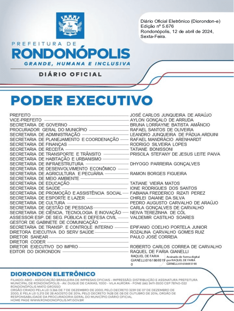 Obtenha o gratuito Dirio Oficial Eletrnico (Diorondon-e) Edio n 5.676 ...