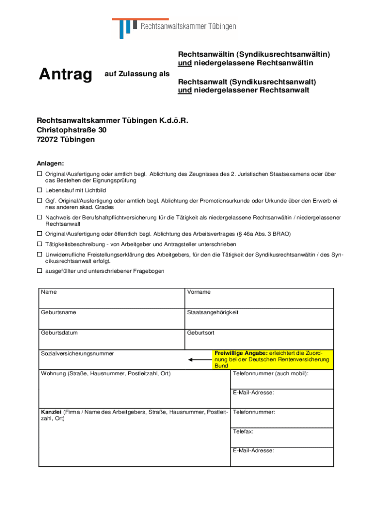 Holen Sie sich kostenlos 3Zulassungsantrag Syndikusrechtsanwalt u. ...