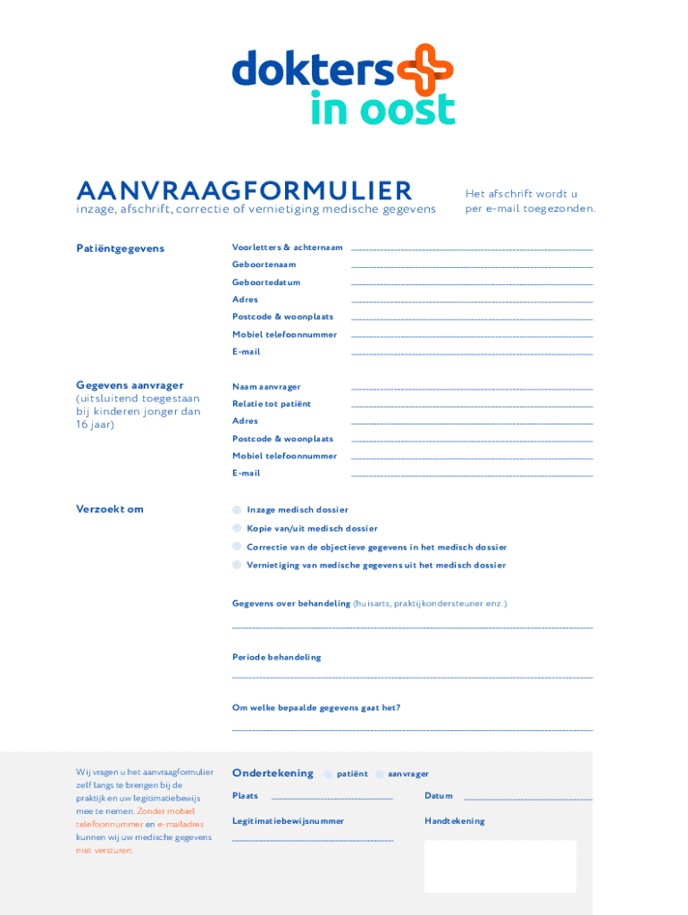 To successfully complete the gratis inzage form, you must prepare certain required information. This includes your personal details — such as your name, address, and date of birth — alongside specific information about the documents you are requesting. For example, you may need to specify the type of data you are interested in, the time frame associated with the data, and the purpose for which the data is being used.