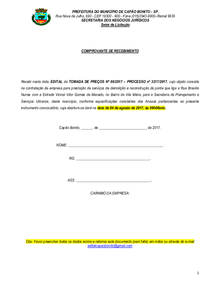 Obtenha o gratuito Rua Nove de Julho, 690 - CEP 18300 - 900 - Fone (015)3543-9900Ramal 9936