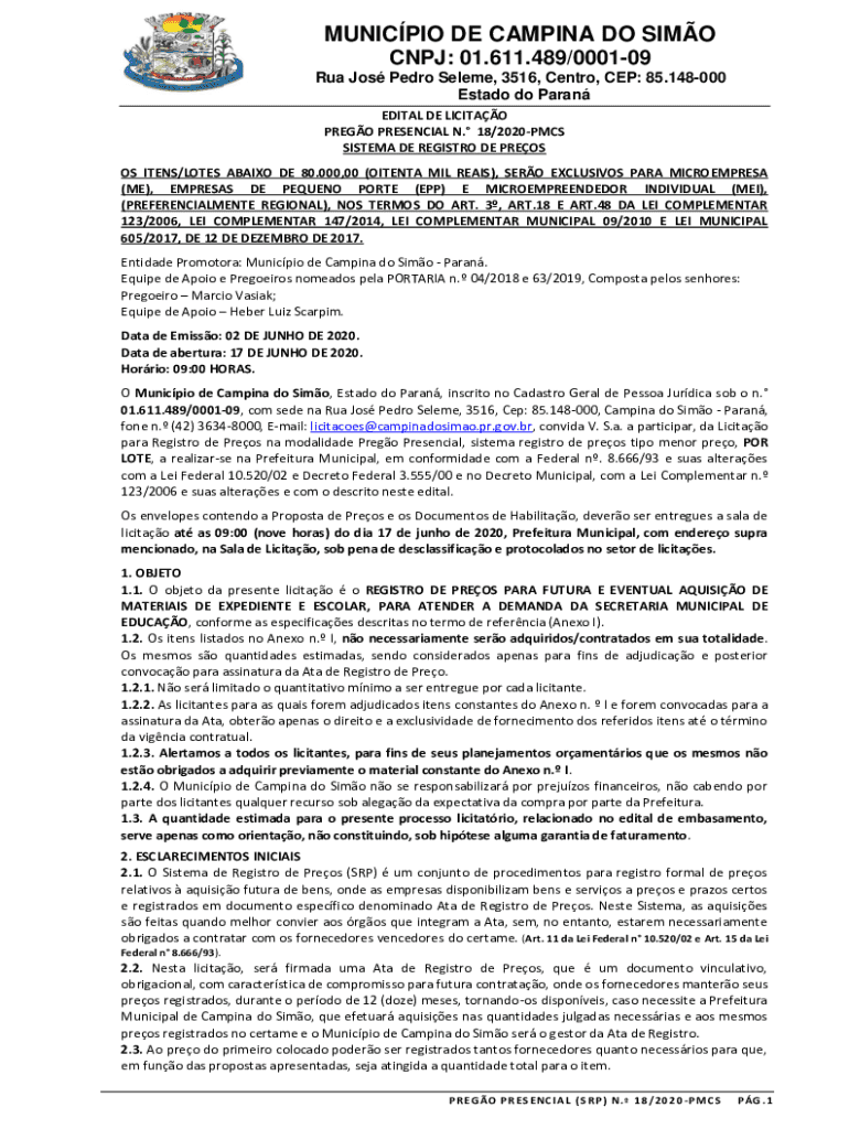 Obtenha o gratuito estado do paran prefeitura municipal de campina do simo