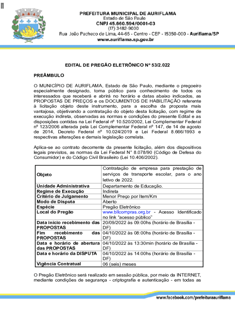 Obtenha o gratuito Prego Eletrnico N 53/2. 022- Auriflama Sp (brasil)