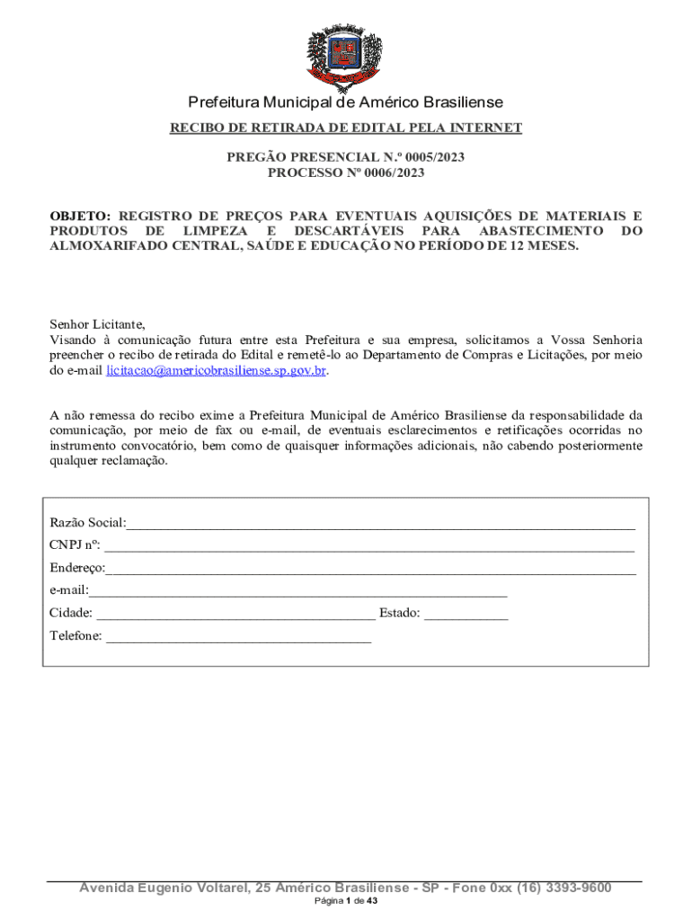 Obtenha o gratuito OBJETO: REGISTRO DE PREOS PARA EVENTUAIS AQUISIES DE MATERIAIS E - americobras...