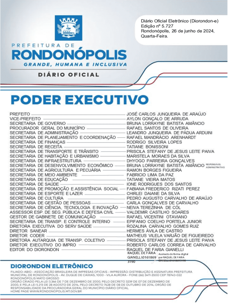 Obtenha o gratuito Dirio Oficial Eletrnico (Diorondon-e) Edio n 5.727 ...