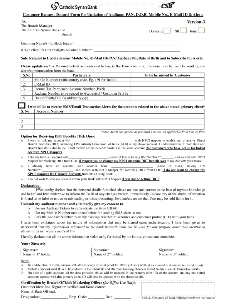 Get the free Aadhaar Enrollment Centres & Aadhaar Linkage - CSB Bank