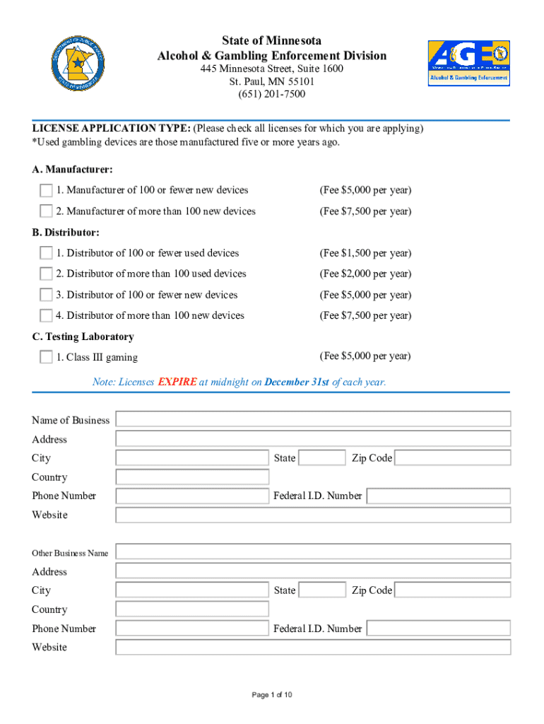 Get the free Alcohol and Gambling EnforcementMinnesota Department ...