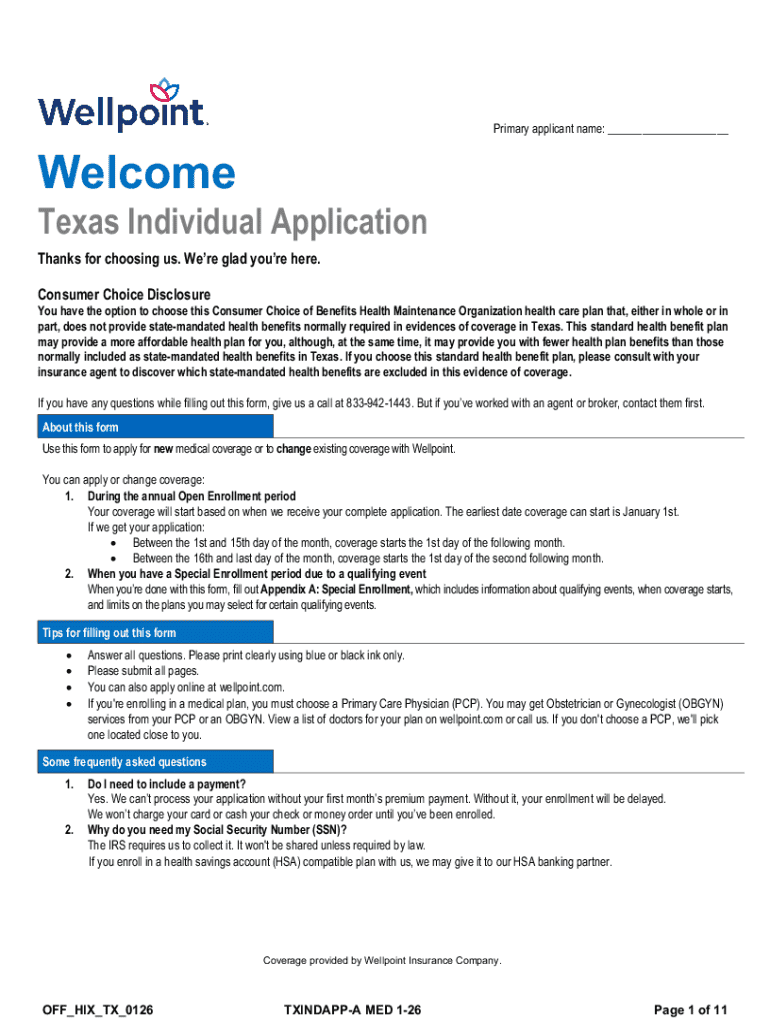 Get the free Welcome - Texas Individual Application