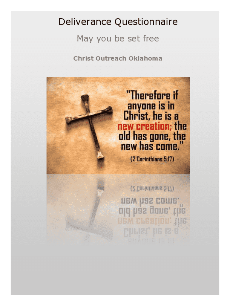 Get the free Deliverance Questionnaire - Uncovering areas of bondage ...