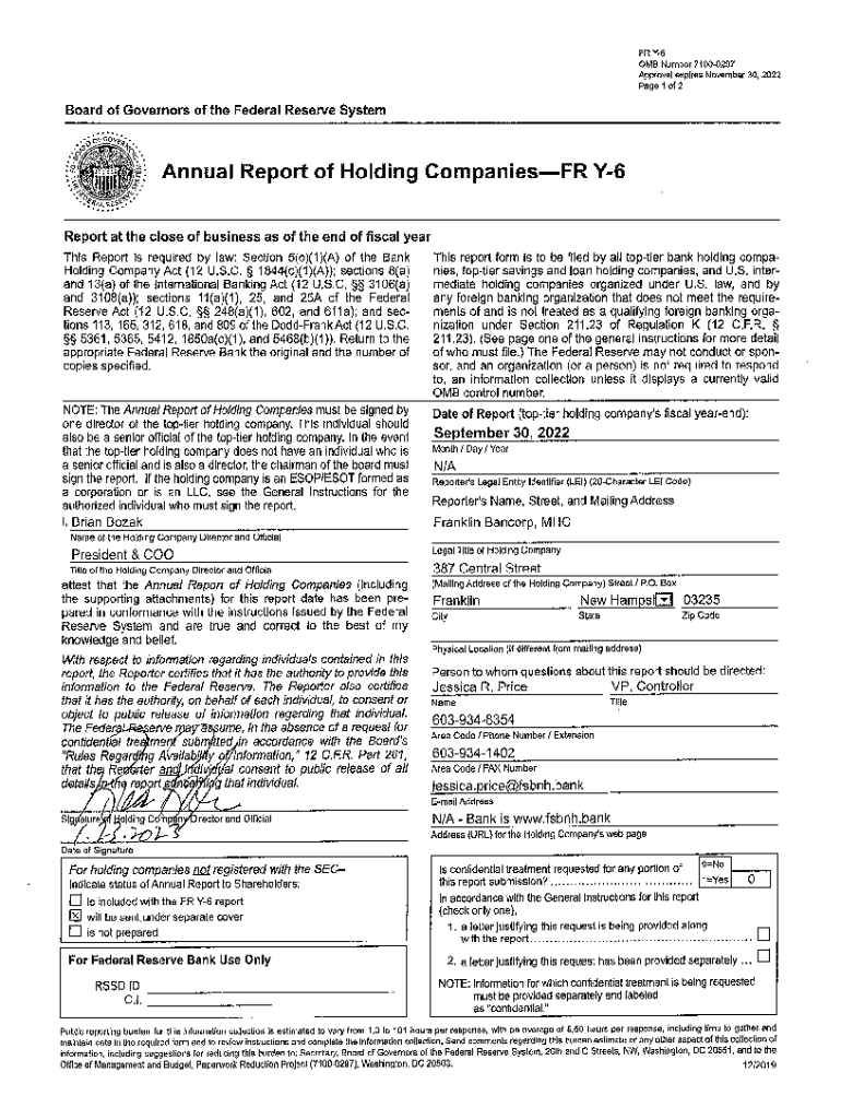 Form FR Y6 Franklin Bancorp, MHC Franklin, New Hampshire Fiscal Year Ending September 30, 2022 Report Item 1. The bank holding company is not registered with the SEC. It does prepare annual consolidated