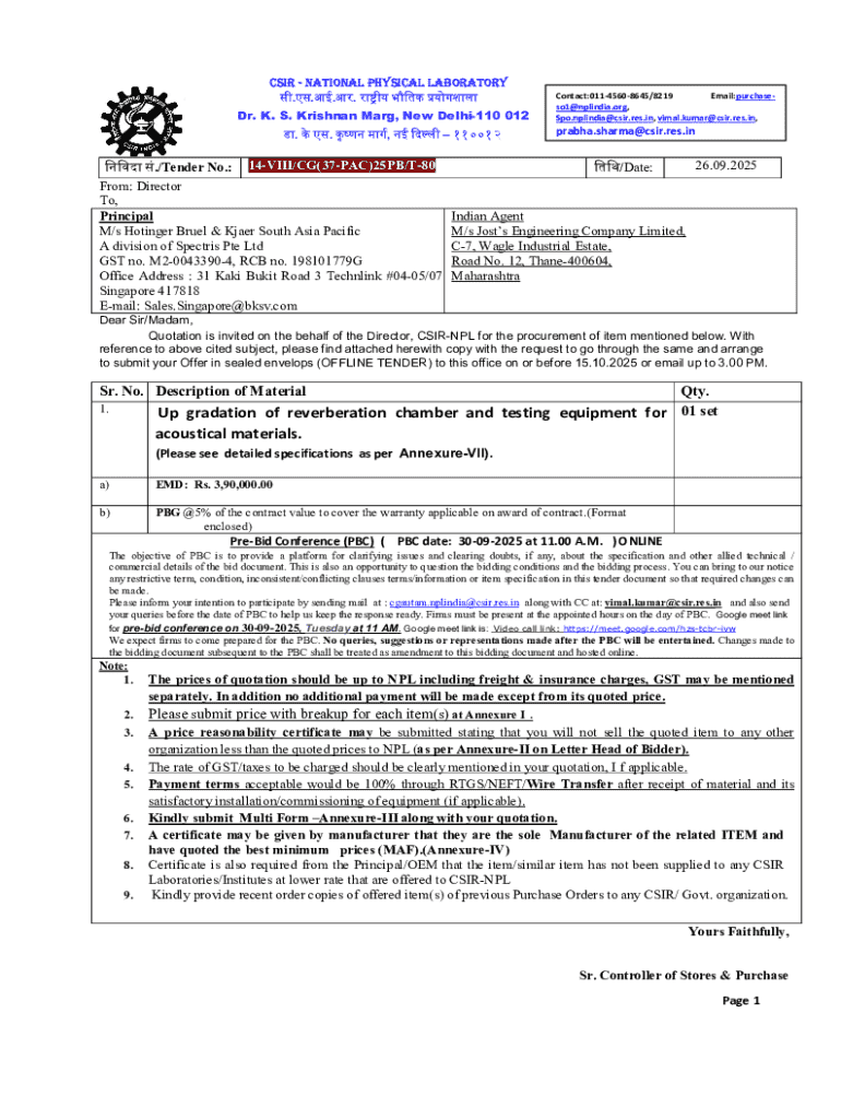 Get the free Up gradation of reverberation chamber and testing equipment for ...