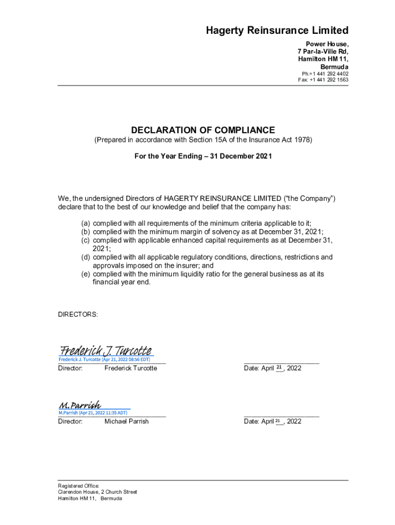 Get the free Hagerty Re Rep Letter to Deloitte Bermuda - signed.pdf