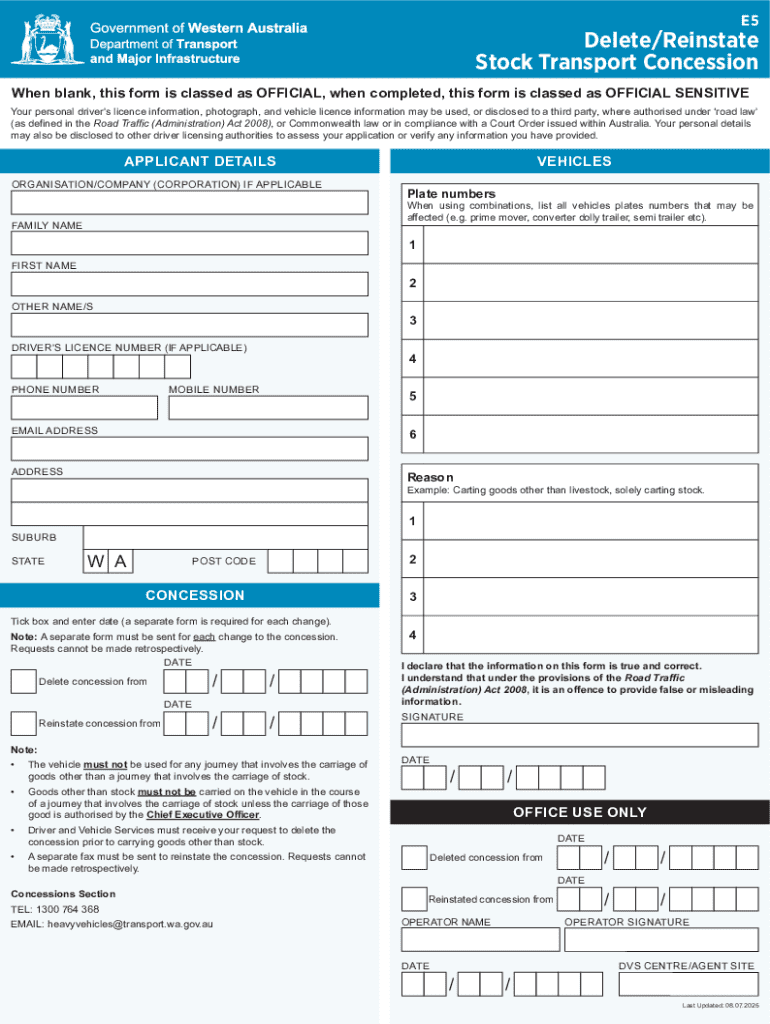 Delete/Reinstate Stock Transport Concession Form: A Comprehensive Guide