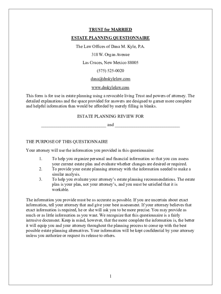 Get the free Trust for Married estate planning questionnaire