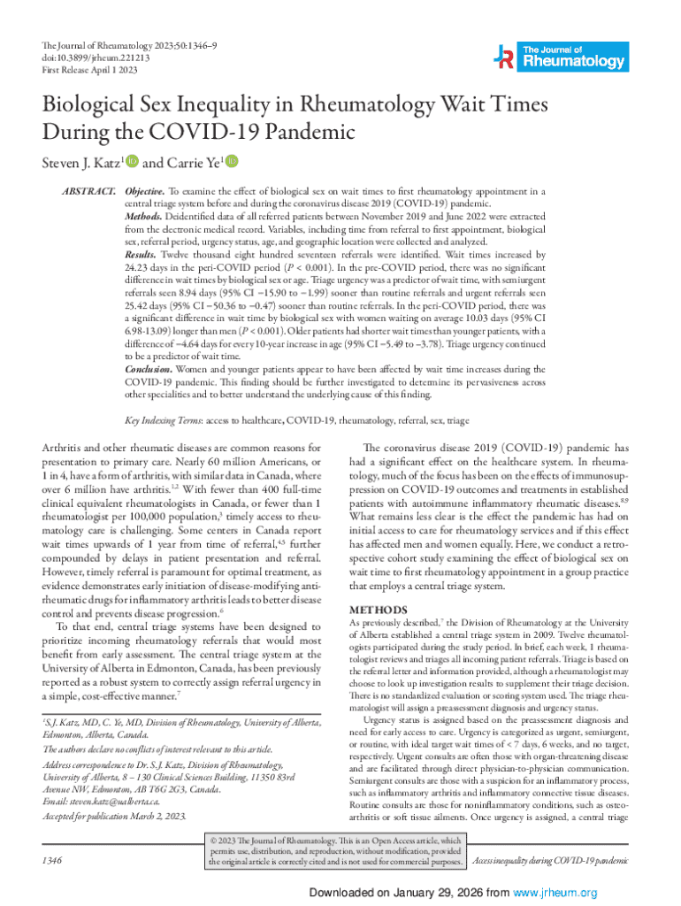 Get the free Biological Sex Inequality in Rheumatology Wait Times During the COVID-19 Pandemic