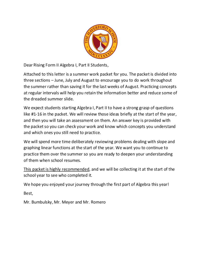 Get the free Dear Rising Form II Algebra I, Part II Students