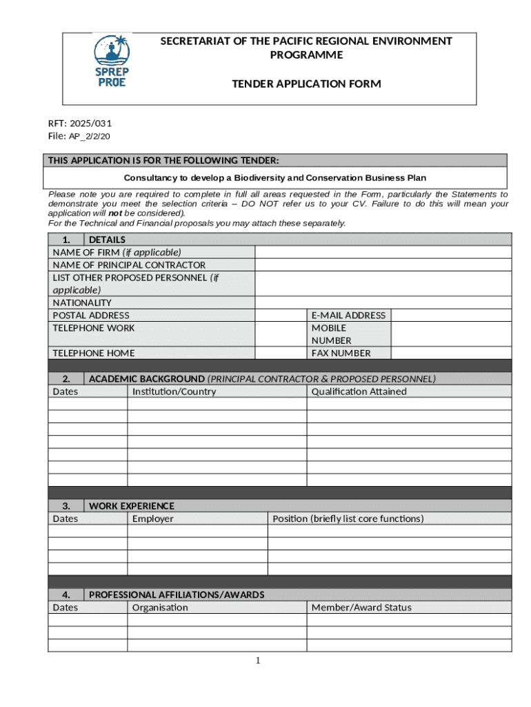 How to fill RTF/2025/031, Request for Tenders: Consultancy to ... word template