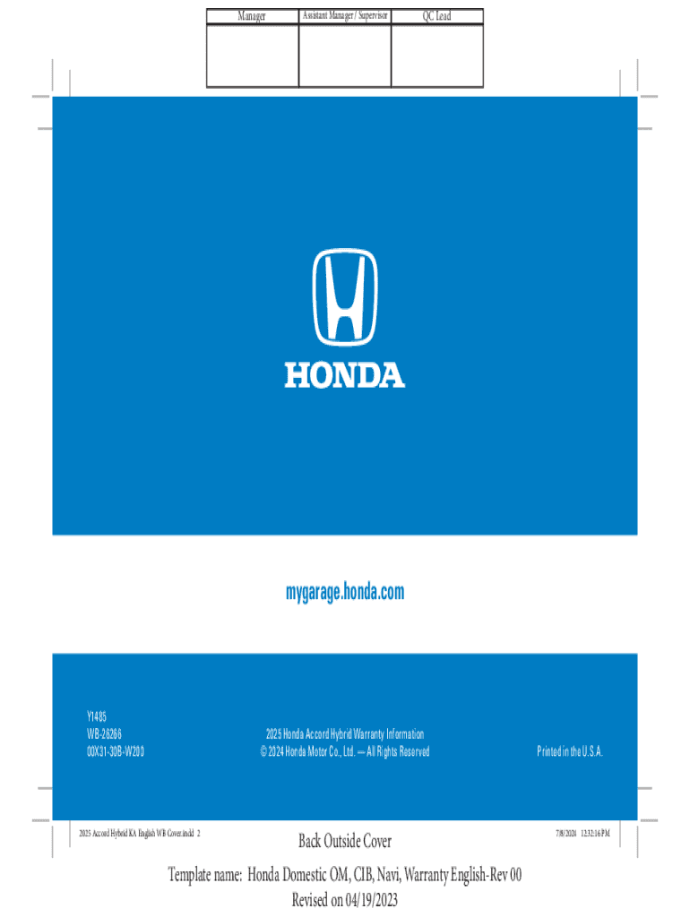 ManagerAssistant Manager / SupervisorQC Leadmygarage.honda.comY1485 WB26266 00X3130BW2002025 Honda Accord Hybrid Warranty Information2024 Honda Motor Co., Ltd.All Rights Reserved2025 Accord Hybrid