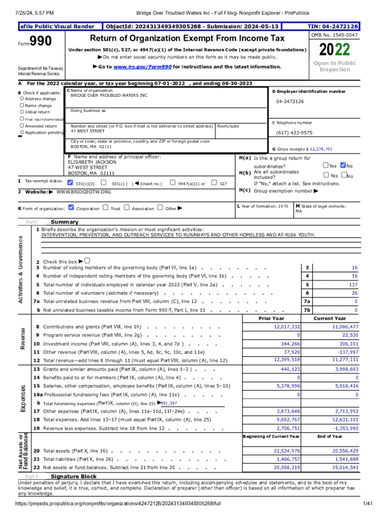 Get the free Bridge Over Troubled Waters Inc - Full Filing- Nonprofit Explorer - ProPublica