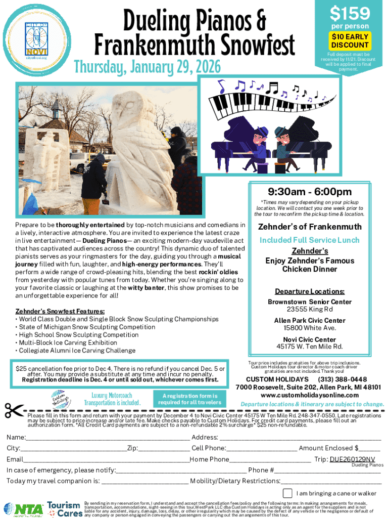 Get the free Dueling Pianos & Frankenmuth Snowfest - City of Novi