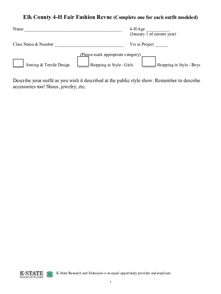 Get the free Elk County 4-H Fair Fashion Revue (Complete ...