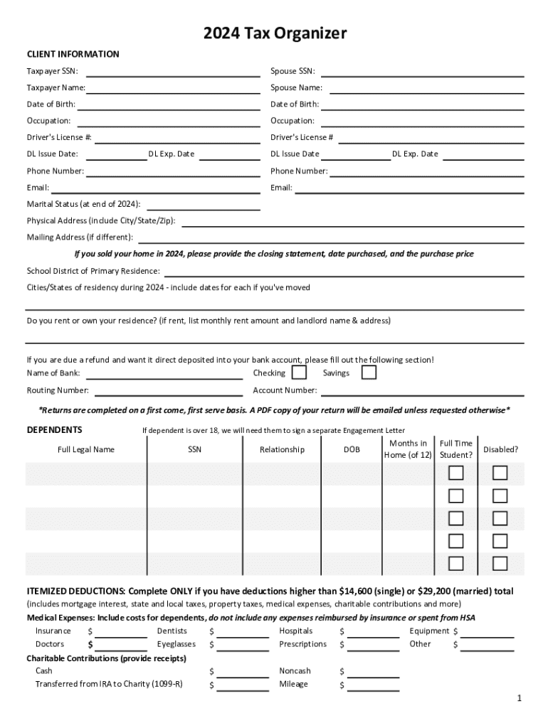 Overview of the 2024 client organizer blank form