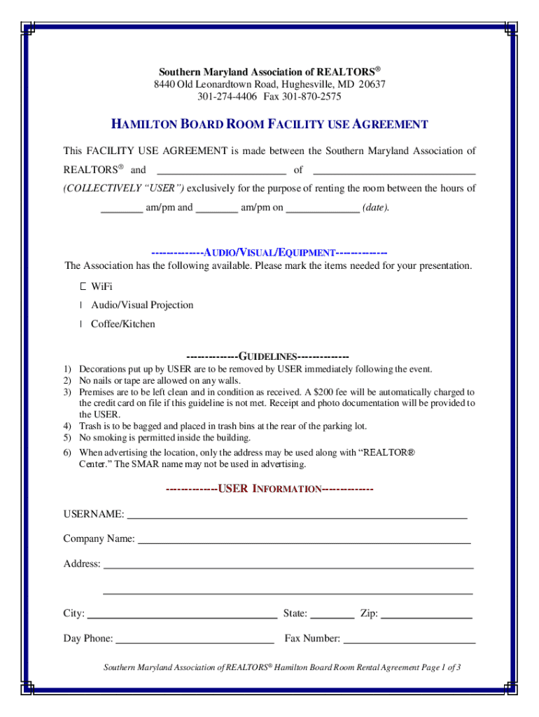 Get the free HAMILTON BOARD ROOM FACILITY USE AGREEMENT