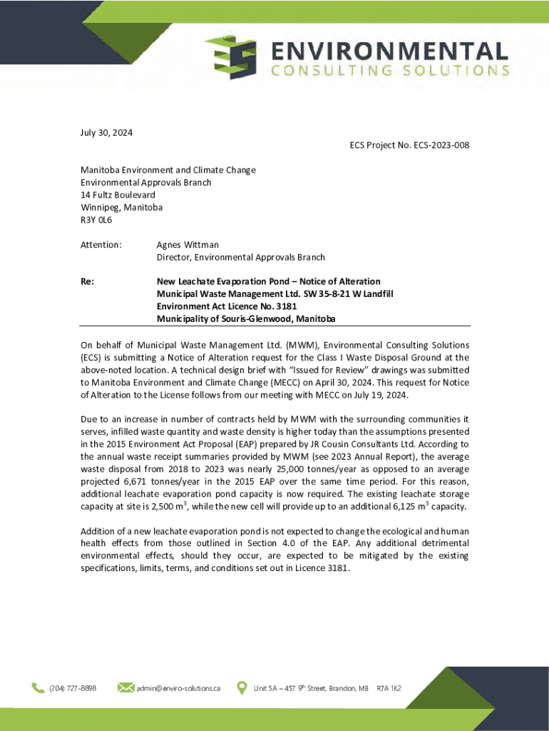 Get the free Agnes Wittmann Director, Environmental Approvals Branch ...