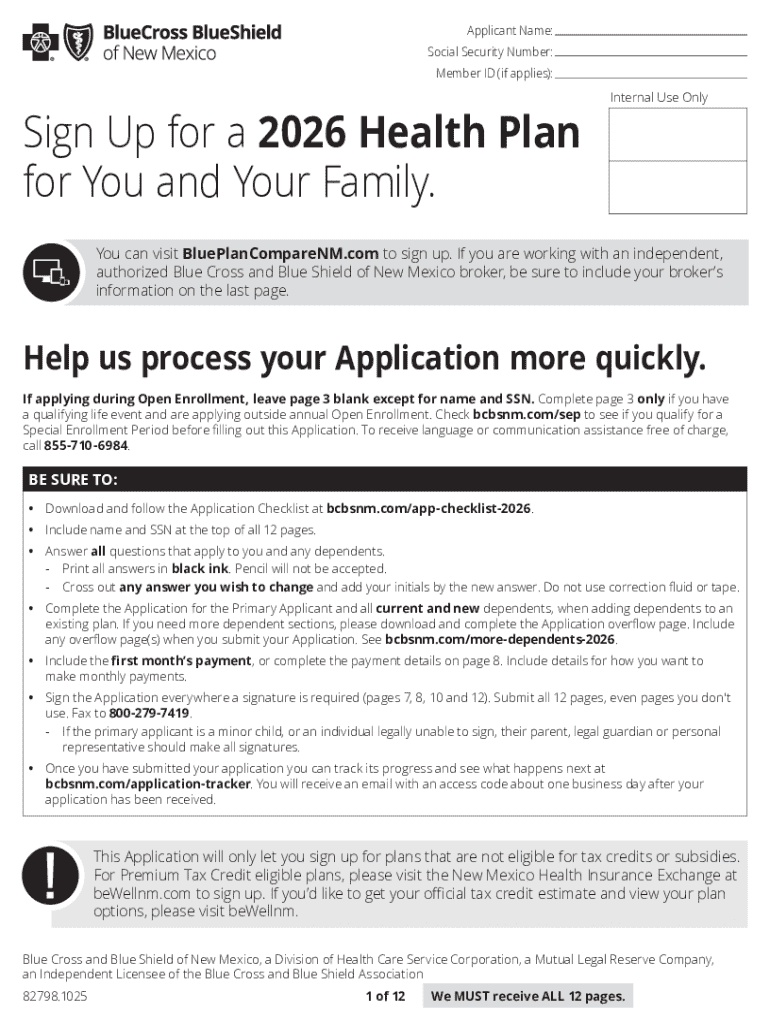 Get the free Blue Cross and Blue Shield of New Mexico Individual and Family Medical Application