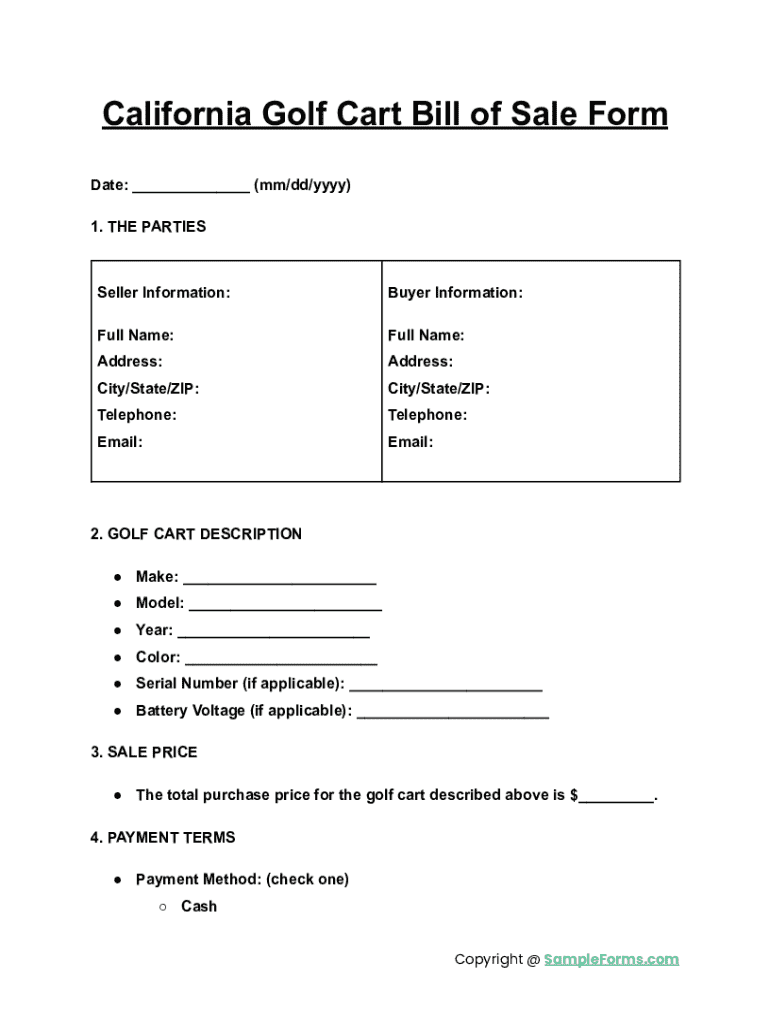 Get the free California Golf Cart Bill of Sale Form
