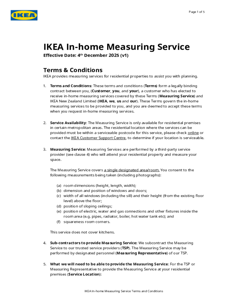 Get the free IKEA Kitchen Measuring Service - Terms and Conditions