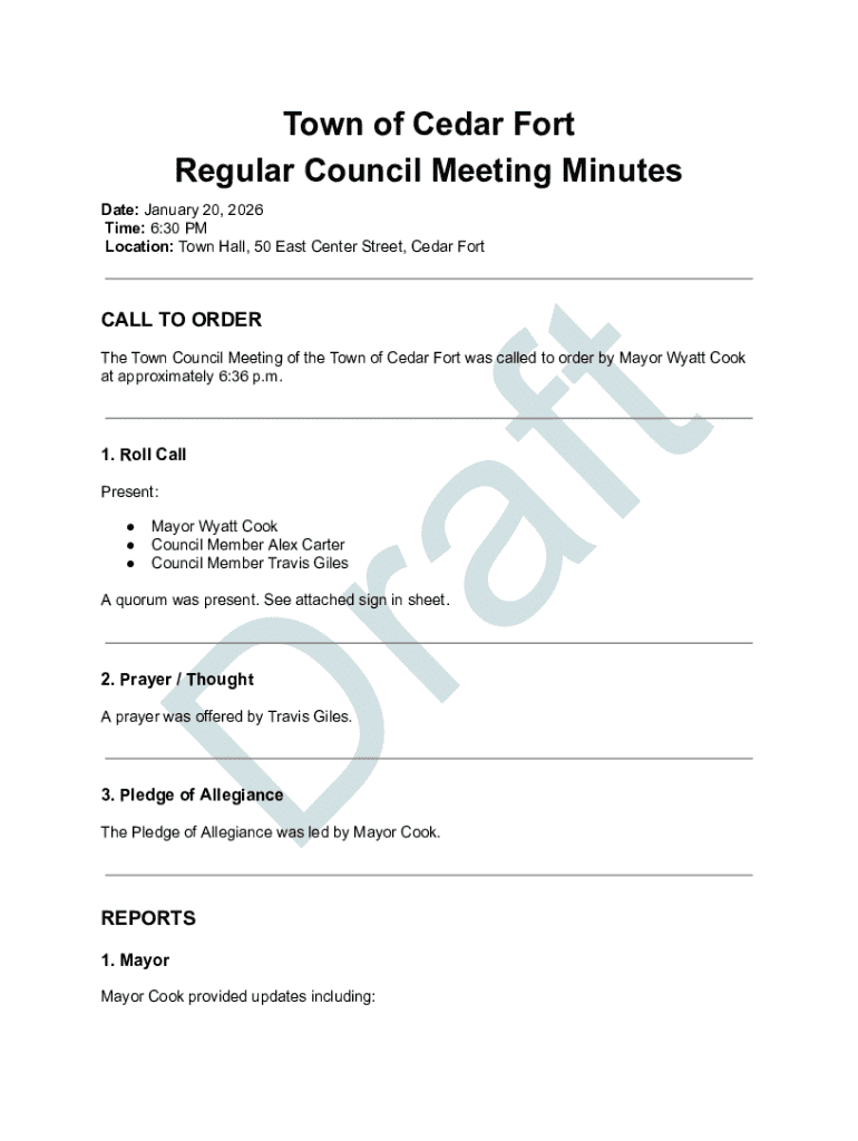 Get the free Town of Cedar Fort Town Council Regular Monthly ...