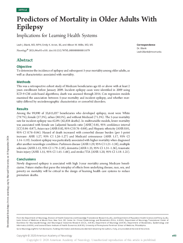 Get the free Predictors of Mortality in Older Adults With Epilepsy