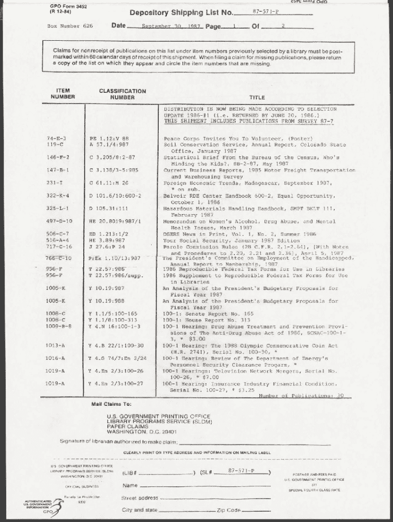 Get the free R 12-84) Depository Shipping List No. Sind