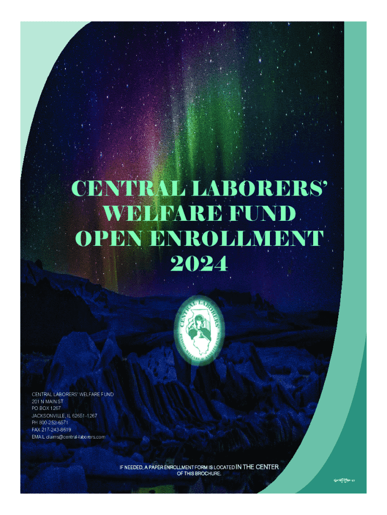 CENTRAL LABORERS WELFARE FUND OPEN ENROLLMENT 2024CENTRAL LABORERS WELFARE FUND 201 N MAIN ST PO BOX 1267 JACKSONVILLE, IL 626511267 PH 8002526571 FAX 2172438619 EMAIL claims@centrallaborers.comIF