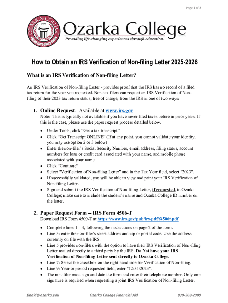 Get the free How to Obtain an IRS Verification of Non-filing Letter 2025-2026