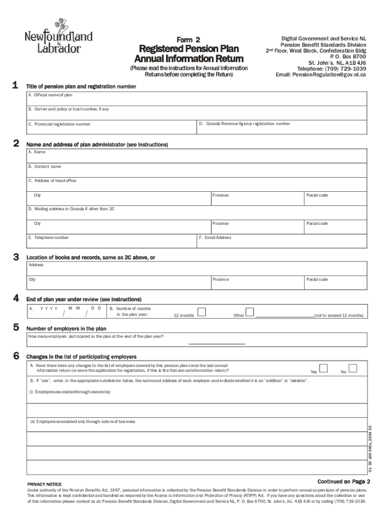 Get the free Form 2 - Annual Information Return for Pension Plans
