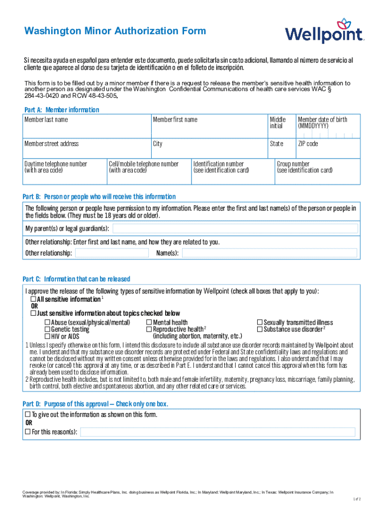 Get the free Instructions for completing the Washington Minor Authorization Form