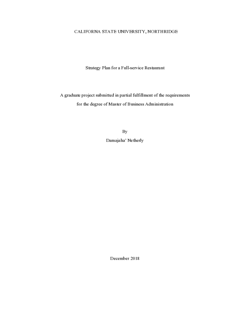 Get the free Strategy Plan for a Full-service Restaurant - ScholarWorks