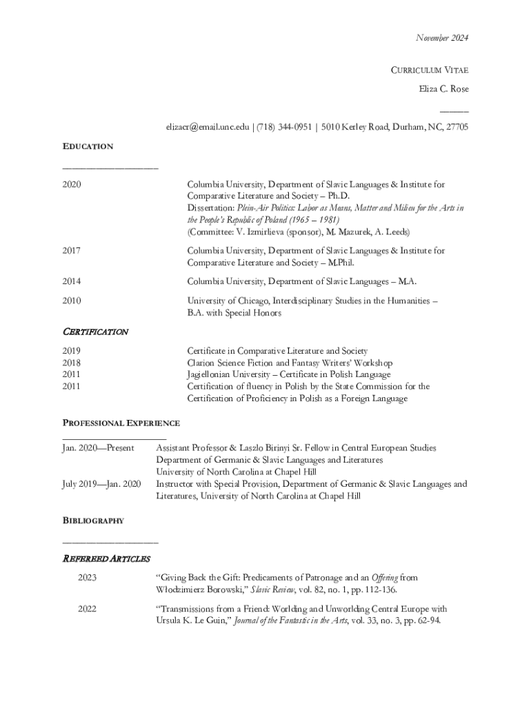 Get the free Eliza Rose - Department of Germanic & Slavic Languages and ...