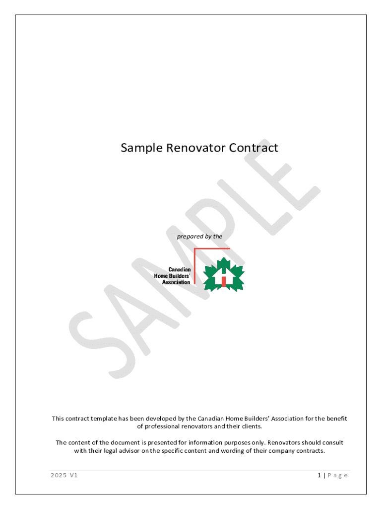 Get the free Sample Renovator Contract - Canadian Home Builders' Association