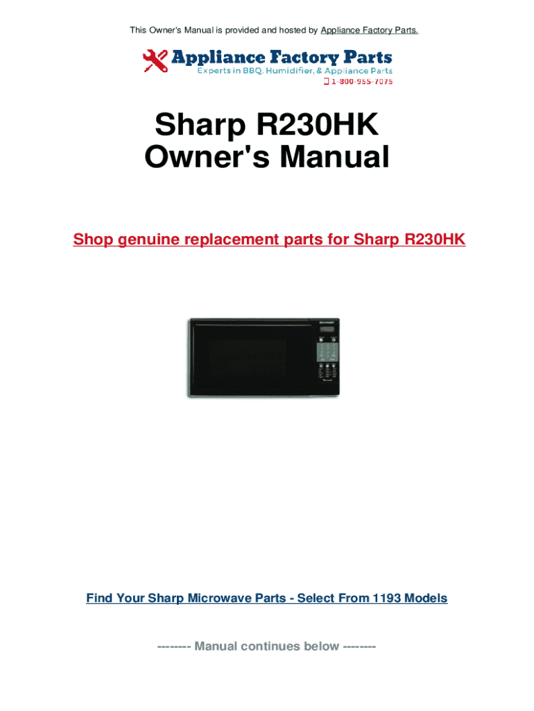 Get the free Parts List; Microwave Oven - Sharp R-230Kk Service Manual
