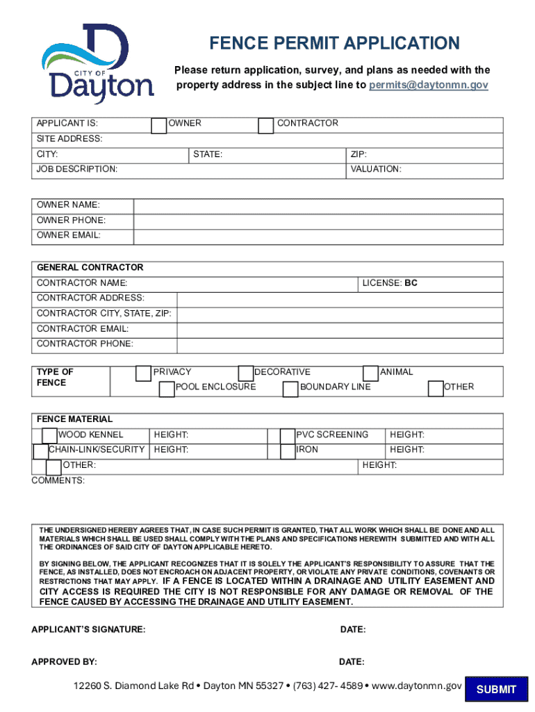While the online process is convenient, some may prefer to apply via a paper form. You can typically download and print the fence permit application from your local building department's website. Once you have the paper form, it's essential to follow instructions closely for accuracy to enhance your chances of approval.