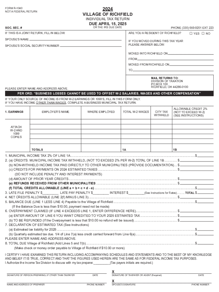 Get the free Downloadable Tax DocumentsRichfield, OH