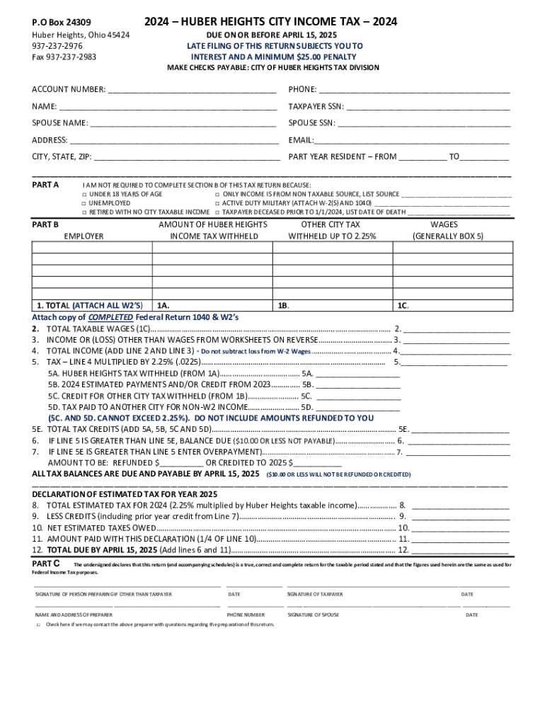 Get the free 2024 HUBER HEIGHTS CITY INCOME TAX - Hhoh.org