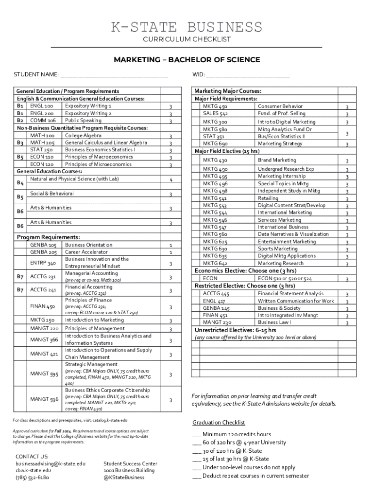 Get the free Business Curriculum GuideKansas State University - cba k-state
