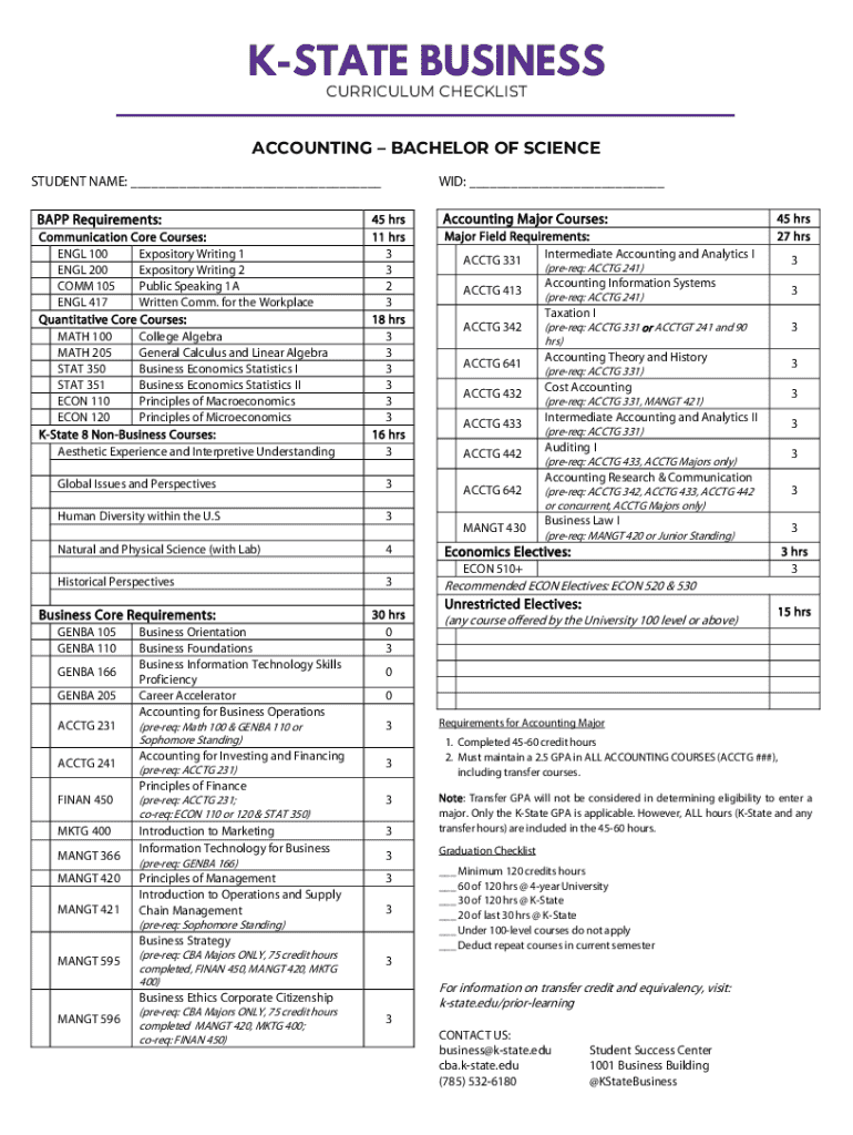 Get the free Program: Accounting (BSBA) Academic Degree Map - cba k-state