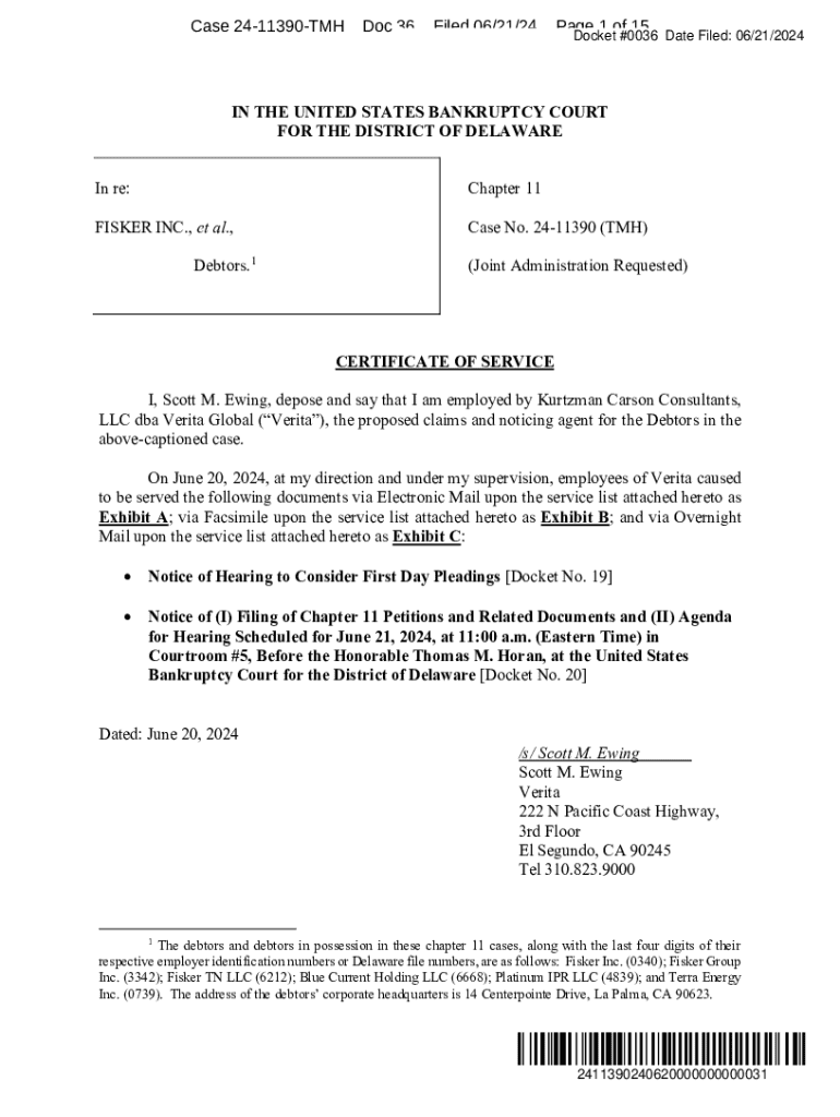 Case 2411390TMHDoc 36Filed 06/21/24Page 1 of 15 Docket #0036 Date Filed: 06/21/2024IN THE UNITED STATES BANKRUPTCY COURT FOR THE DISTRICT OF DELAWARE In re:Chapter 11FISKER INC., et al.,Case No. 2411390