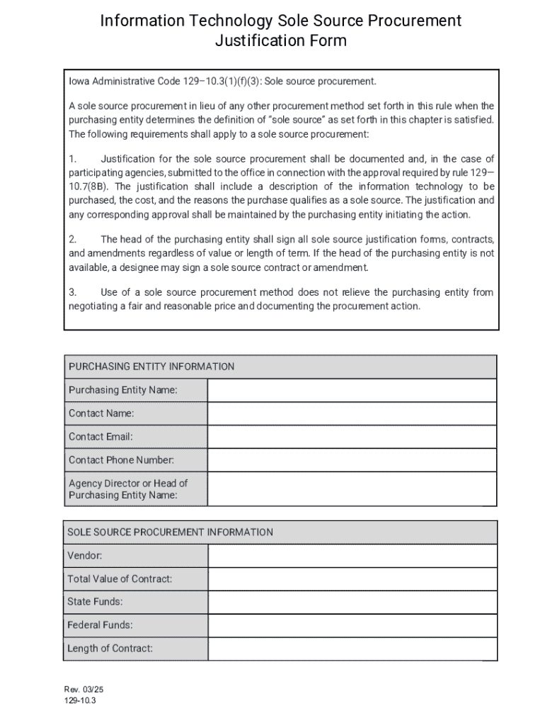 Get the free Sole Source Request Form - Iowa State Procurement