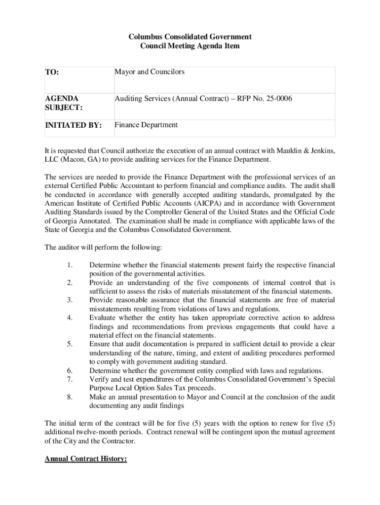 Get the free Auditing Services (Annual Contract) RFP No