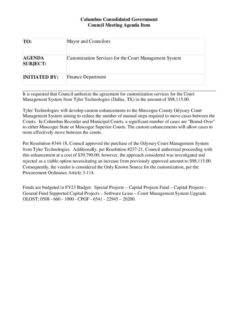 Get the free It is requested that Council authorize the agreement for customization services for ...